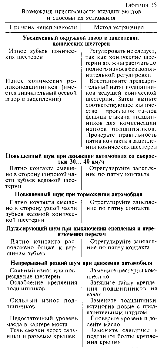 Для подтверждения правильности определения источника шума поднимите колеса заднего и промежуточного мостов, пустите двигатель и включите пятую передачу. При этом можно убедиться, что шумы, вызываемые редукторами, действительно исходят от них, а не от других сборочных единиц.