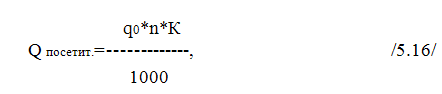 Максимальный часовой расход горячей воды посетителями через краны общего пользования определяем по формуле: