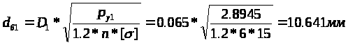 дзе p>у> - умоўны цiск, роўны 1,2*p; [] - дапушчальнае напружанне расцягвання.