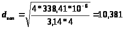 Спачатку вылiчваем плошчу s , а потым знаходзiм значэннi D i d . Для разлiку дыяметраў зададзiм адносiны ў залежнасцi ад цiску: пры p > 5 МПа d/D = 0,75;
