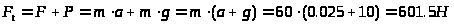 На рис.1 показано, что действуют две силы, где исходными данными являются масса груза 35 кг, скорость подъёма 0.075 м/с, масса стола, на котором размещается палета 25 кг. Также есть постоянные – это скорость свободного падения равная 9,8 м/с2, а ускорение вычисляется по следующей формуле:
