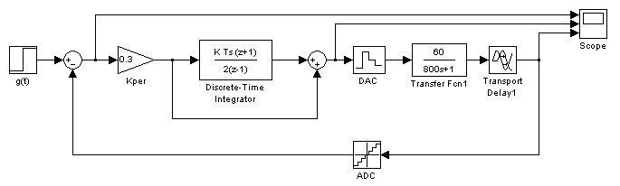 >С помощью моделирования системы в пакете >>Simulink>> определяем параметры настройки регулятора.>