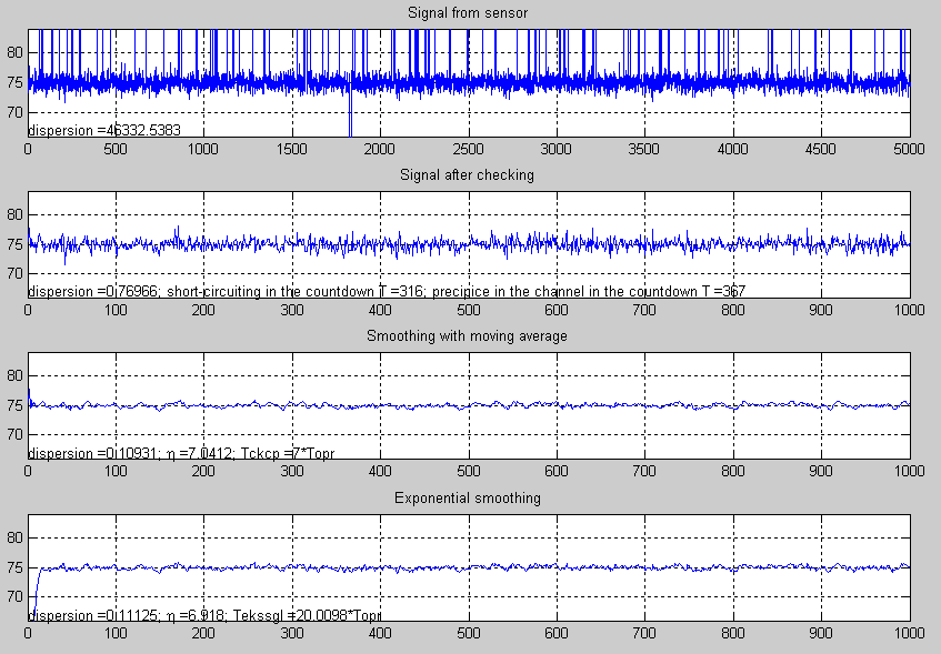 Это время будет возрастать с увеличением точности вычислений δ. Достоинством алгоритма экспоненциального сглаживания, по сравнению со скользящим окном, является малый объем памяти, хотя он значительно дольше входит в установившийся режим.