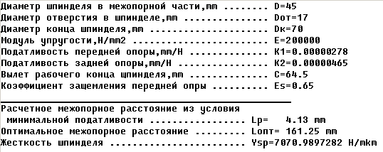 Анализируя полученные данные, делаем вывод, что хотя подшипники передней опоры более жёсткие по сравнению с подшипниками задней опоры, прогибы в передней опоре всё равно на порядок выше из-за больших сил, возникающих на торце шпинделя при фрезеровании.