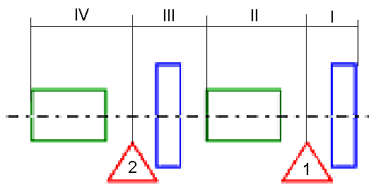 Для получения частотных характеристик шпиндельного узла разобъем его на участки и расчитаем их осевые моменты инерции и массу: