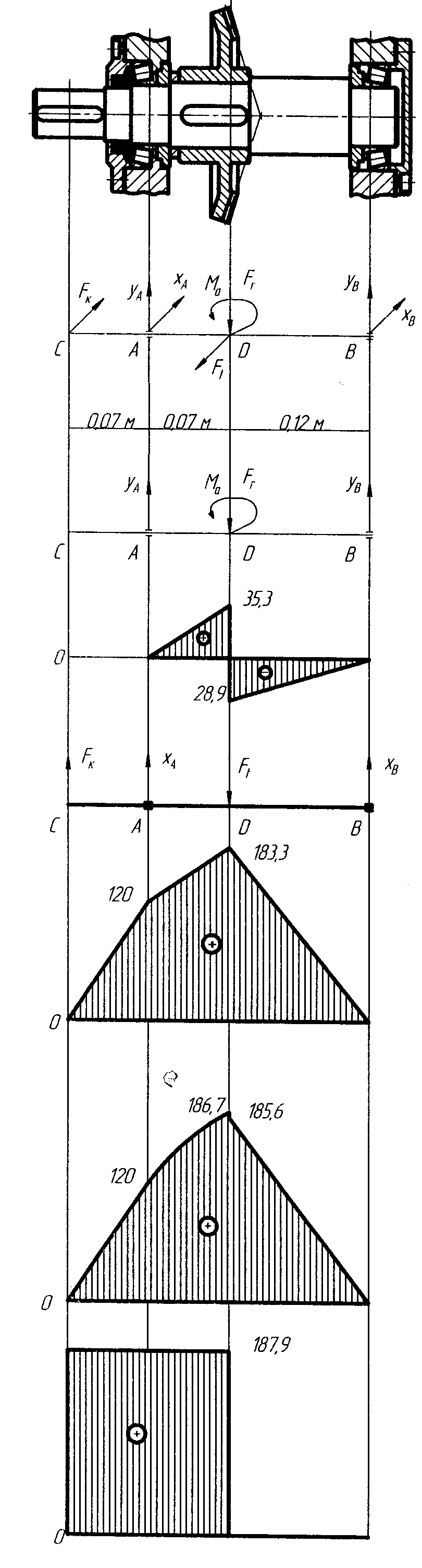 Из предыдущих расчетов вращающий момент на ведомом валу М>3> = 187,9 (Н ·м);