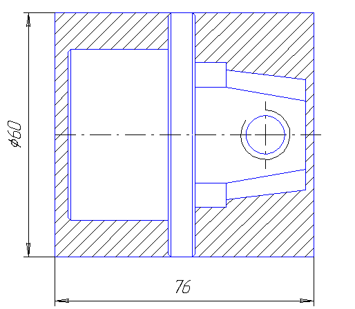 1.1.3 Заготовку детали 3 «бобышка» 766.12.42.02 можно получить штамповкой или из проката. Эффективнее и экономически выгоднее будет принять заготовку из проката – круг В60 ГОСТ 2590-71/В Ст3 по 5 I ГОСТ 535-71. На рис. 1.3 показана конструкция заготовки.