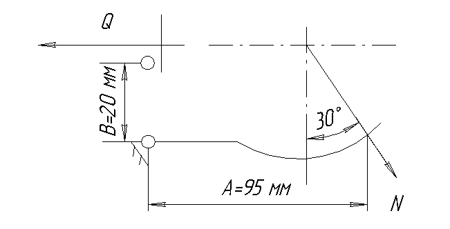 А и В – плечи захватного механизма А=95 мм, В=20 мм.