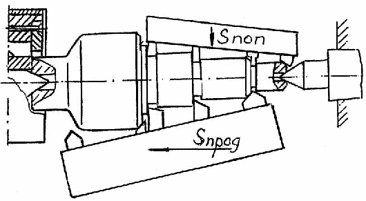 Цилиндрические поверхности 3 и 10 диаметра 26к6 обрабатываются черновым и чистовым точением и шлифованием: Припуск на шлифование по табл. 28 стр. 66 [5] на сторону 0,45:2 0,23 мм. Припуски на чистовое точение по табл. 26 стр. 65 [5] на сторону 1:2 = 0,5 мм. Полный припуск с чертежа заготовки равен 2,1 мм. Тогда при черновом обтачивании нужно снять припуск 2,1 – 0,23 – 0,5 = 1,37 мм.