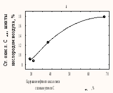 ▪ Степень окисления С>нлт. >шихты> >кислородом воздуха возрастает по мере увеличения содержания нефтяного кокса в смеси с газовым углем (рис. 8, а). Это компенсируется одновременным повышением дозировки восстановителя в брикетах (рис. 8, б).