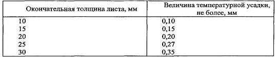 После охлаждения контролер ОТК производит осмотр листов с обоих сторон, замеряет толщину листов с учетом температурной усадки согласно таблице 11.4 и отмечает дефектные места.