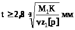 Выразив в формуле (13) окружное усилие через момент М>1> на малой звездочке, шаг цепи t и число зубьев z, а площадь проекции опорной поверхности шарниров через шаг t, получим формулу для предварительного подбора шага цепи: