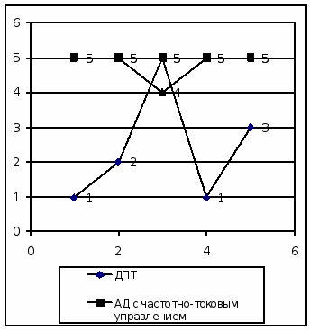 Как видно из оценочной диаграммы наилучшим типом привода будет АД с частотно-токовым управлением.