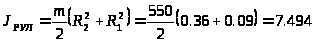 После определения радиуса находим момент инерции. Он складывается из двух частей—приведенного момента инерции механизма и момента инерции рулона. Момент инерции рулона определяется как момент инерции кольца.