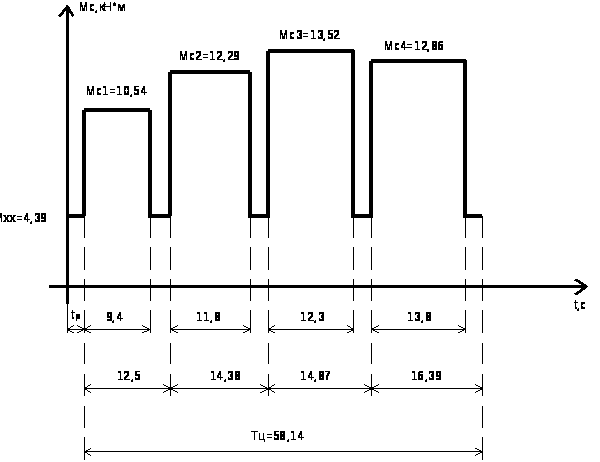 По результатам расчета переходных процессов за цикл работы можно рассчитать эквивалентный ток и следовательно проверить правильность выбора электродвигателя. Эквивалентный ток рассчитывается по следующей формуле: