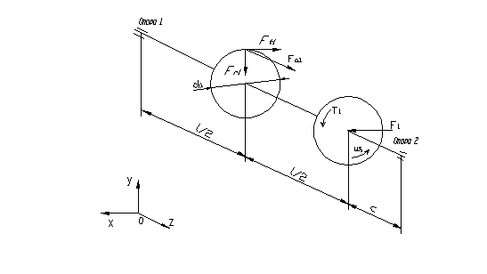 1 Определим силы реакций в подшипниках из условий равновесия: