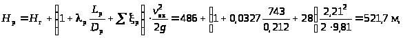 де ∑ξ>р> = 25÷35 ― расчетная сумма коэффициентов местных гидравлических сопротивлений системы трубопроводов.