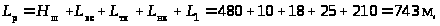 где L>вс> = 8÷12 м ― длина всасывающего трубопровода; L>тх> = 15÷20 м ― длина трубопровода в трубном ходке; L>нк> = 20÷30 м ― длина трубопровода в насосной камере водоотливной установки.