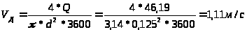 V – скорость движения воды в трубе, м/с;