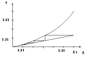 Строим равновесную линию процесса десорбции при 1370С для верха колонны, при 1560С —для средней части и при 173— для нижней части. Рабочая линия имеет вид прямой Y>к>−Y>н> =(L∕ G)∙(X>н>− X>к>), тангенс угла наклона которой равен L∕ G = 4.37∕ 15.5=0.28.