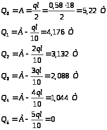 в сечении x = 0,2l, ордината Q>2> = 0,8 и т.д.