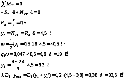 Расчетные значения поперечных сил от сосредоточенных и равномерно распределенных нагрузок будут следующими: