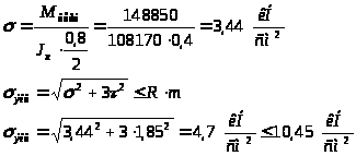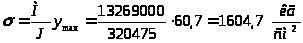 10) Напряжение в сечении стыка главной фермы и концевой балки: