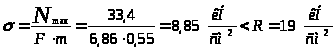 Сжатие: N>max>> >= -42,1 (kH); N>min>> >= -6,7 (kH) ; l>p>= 134,4 cм.