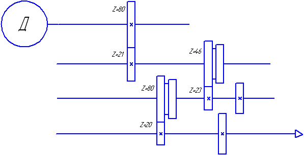 4.3 Выбор чисел зубьев и определение действительных частот вращения