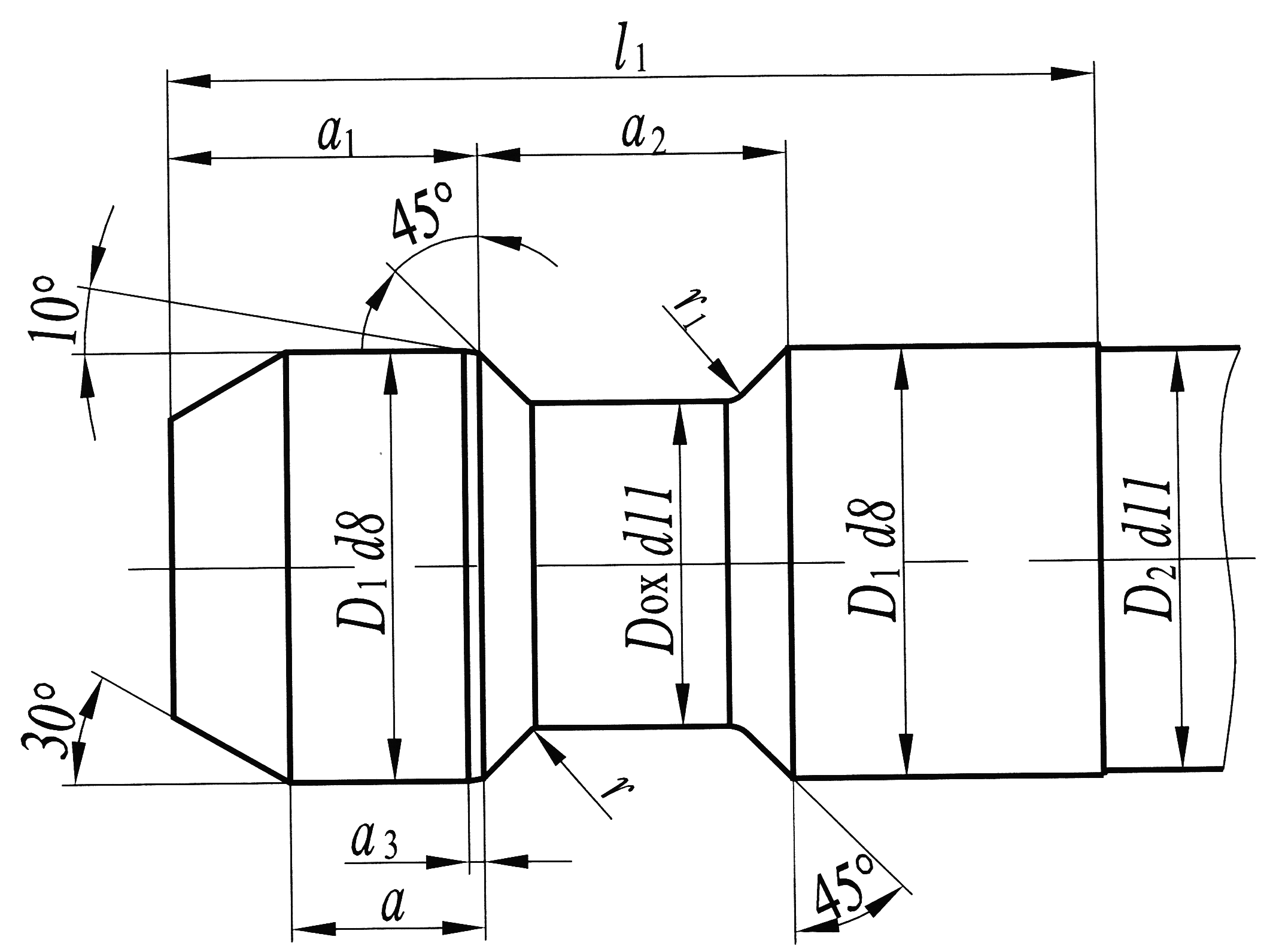 Диаметр хвостовика должен быть меньше диаметра предварительно обработанного отверстия D>0> не менее, чем на 0,3 мм для свободного входа хвостовика в деталь.