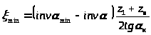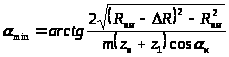 Минимальный коэффициент смещения ξmin, при котором высота среза кромки колеса будет равняется допустимой величине ∆R, определяется по формуле