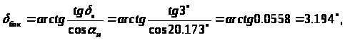 Чтобы уменьшить искривление профиля, связанного с наличием угла γ>в>, профильный угол исходного контура долбяка >и> при изготовлении принимается больше, чем профильный угол колес, которые нарезаются, >к>. Он определяется по формуле