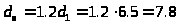 Для того, чтобы внутренний диаметр долбяка во время нарезания не контактировал с внешним диаметром колеса, высота зуба долбяка принимается равной: