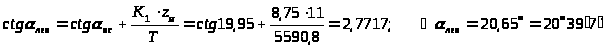 Расчетный профильный угол исходного профиля в нормальном сечении