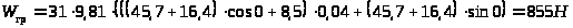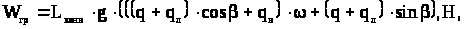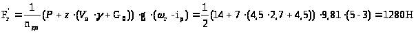где G>0>, G - масса соответственно машины и груза, т; ω>0> - основное удельное сопротивление движению машины, Н/кН (ω>0>=80-100 для дорог без покрытия, с зачисткой)(1.стр.93); ω>кр> =(0,05÷0,08)ω>0> - дополнительное сопротивление движению на криволинейных участках, Н/кН (ω>кр>=0,05·100=5 Н/кН); W>в> - дополнительное сопротивление воздуха, Н/кН (W>в> = 0 - при скорости движения менее 20 км/ч); i - удельное сопротивление на уклоне, Н/кН (i=3Н/кН); а - ускорение трогания, м/с2 (а=0,4-0,5).