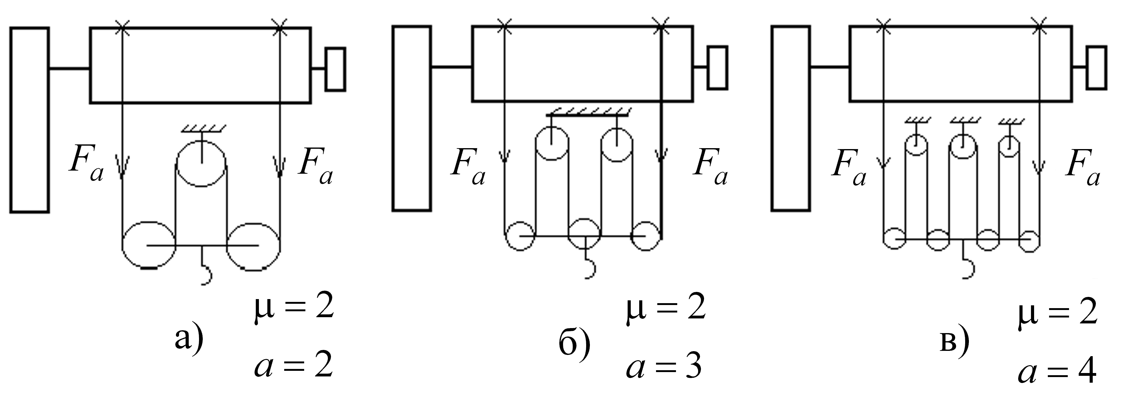 Рис.2. Схемы полиспастов механизма подъема груза
