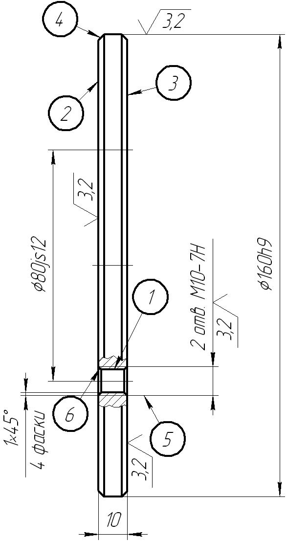 Структура операции устанавливается с учетом необходимости переключения режимов резания, смены режущего инструмента и контрольных замеров для каждой поверхности. Для этого используем данные расчетов режимов резания и требования к точности обработки каждой поверхности (см. чертеж детали).