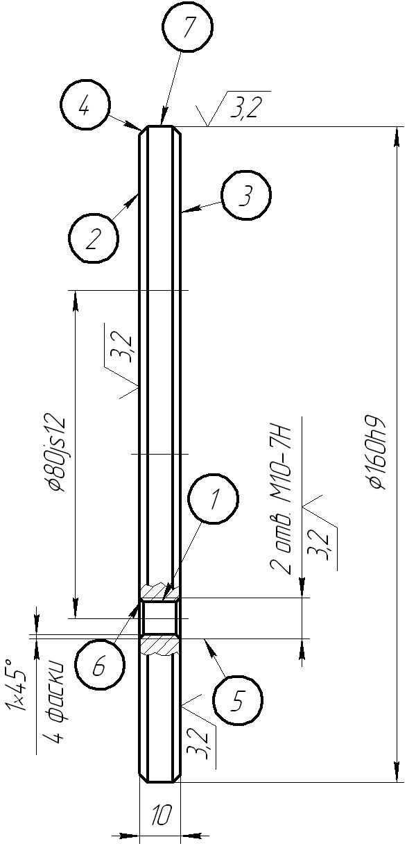Принимаем, предварительно, по карте 3, стр. 39, [2] подачу для обработки каждой поверхности в зависимости от заданной шероховатости (чистоты) поверхности. По чертежу детали поверхности 7 и 4 должны обрабатываться с шероховатостью Ra3,2.