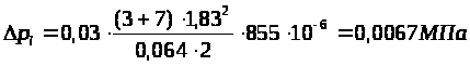 Определяем потери давления по длине гидролинии ∆p>l> , МПа, (путевые) по формуле (11):