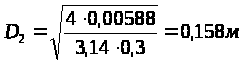Определяем диаметр поршня D>2>, м, из условия обеспечения заданной скорости движения штока V по формуле: