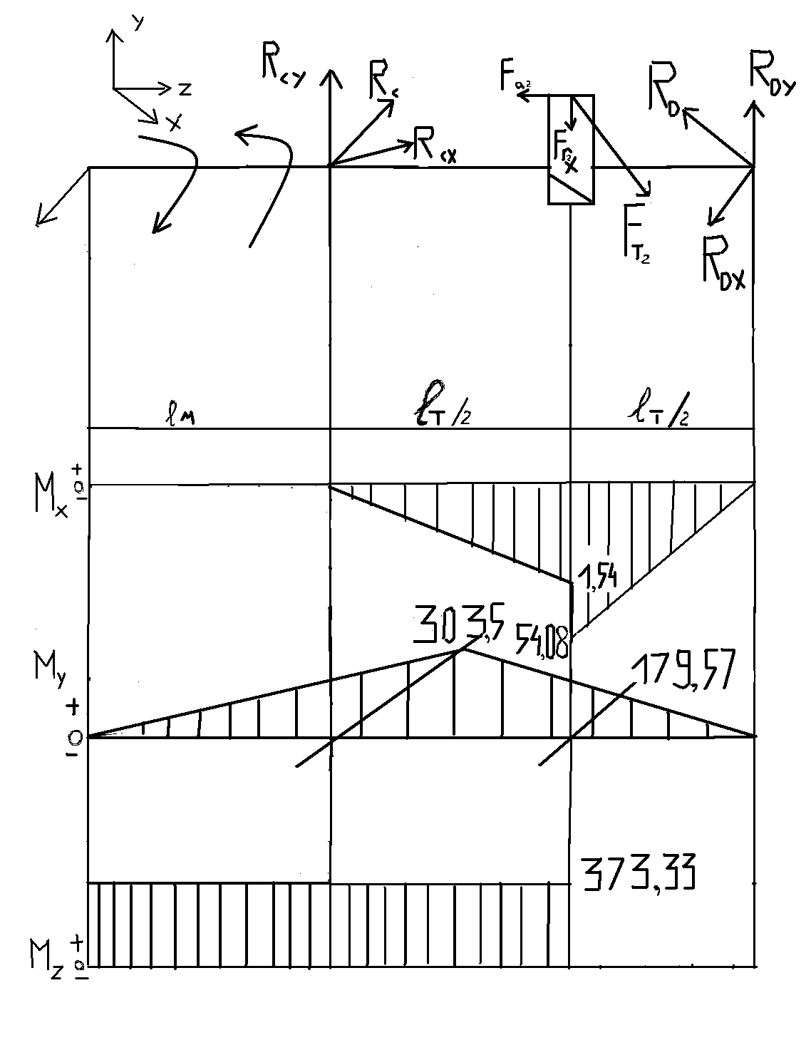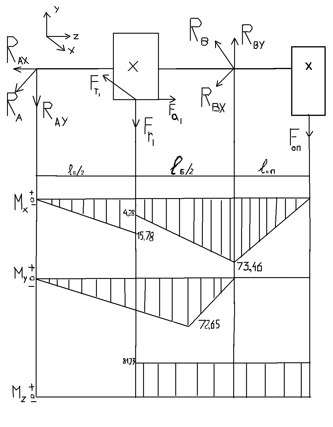 2.7 Расчётная схема валов редуктора