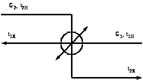 Из температурной схемы видно, что в данном варианте теплообмена при заданных начальных и конечных температурах потоков наблюдается так называемое "пересечение температур", это говорит о том, что данный вариант теплообмена работать не будет.