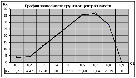 В результате данных полученных при расчете строим график зависимости грунта от положения центра тяжести.