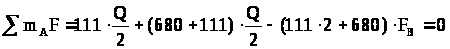 Из уравнения моментов найдем силы F>A> и F>В:>