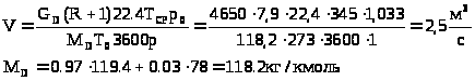 Объемный расход проходящий через колонну пара при средней температуре в колонне tCP = (63+80.5) /2 = 720С: