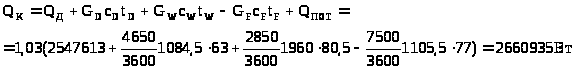 здесь тепловые потери приняты в размере 5%, удельная теплоемкость исходной смеси взята при средней температуре (77+18) /2 = 47,50С