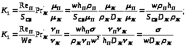 где w – скорость пара в колонне, м/с; SСВ – относительная площадь свободного сечения тарелки; hП – высота сливной перегородки, м; ρП и ρЖ – плотности пара и жидкости, кг/м3; DЖ – коэффициент диффузии легколетучего компонента в исходной смеси; σ – поверхностное натяжение жидкости питания, Н/м.