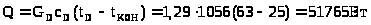 Расход теплоты, отдаваемый охлаждающей воде в водяном холодильнике дистиллята:
