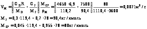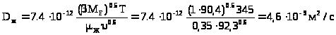 В нашем случае: β = 1; μЖ = 0,35 сП = 0,35∙10-3 Па∙с; М = МF = 90,4 кг/кмоль; υ = 3,7 + 14,8 + 3∙24,6 = 92,3; Т = 72 + 273 = 345К.