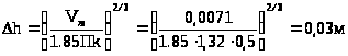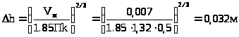 величину ∆h – высоту слоя над сливной перегородкой рассчитываем по формуле: